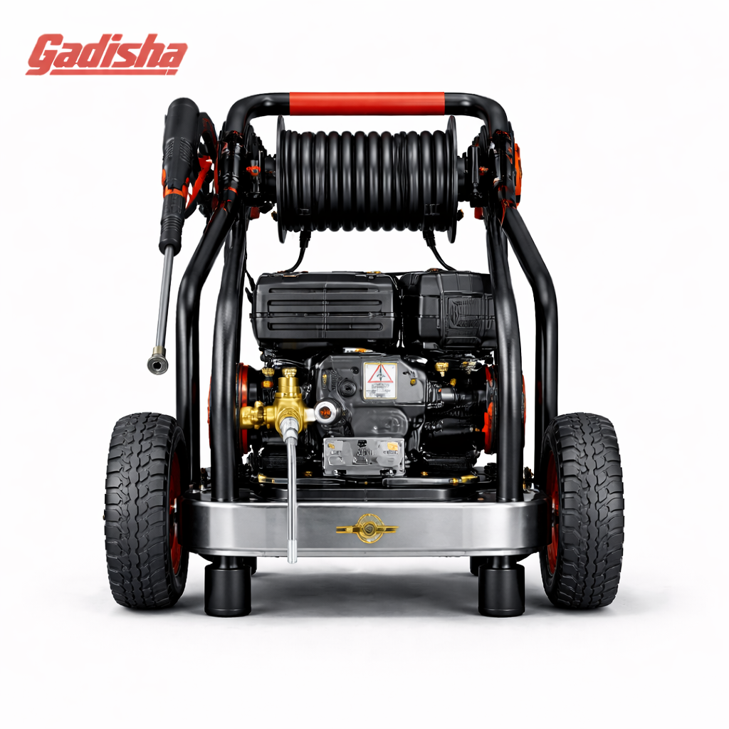 The Gadisha Commercial Pressure Washer is engineered for professionals who require maximum power and reliability. Powered by a high-output gasoline engine, it drives a heavy-duty pump capable of producing sustained high pressure for deep cleaning tasks.