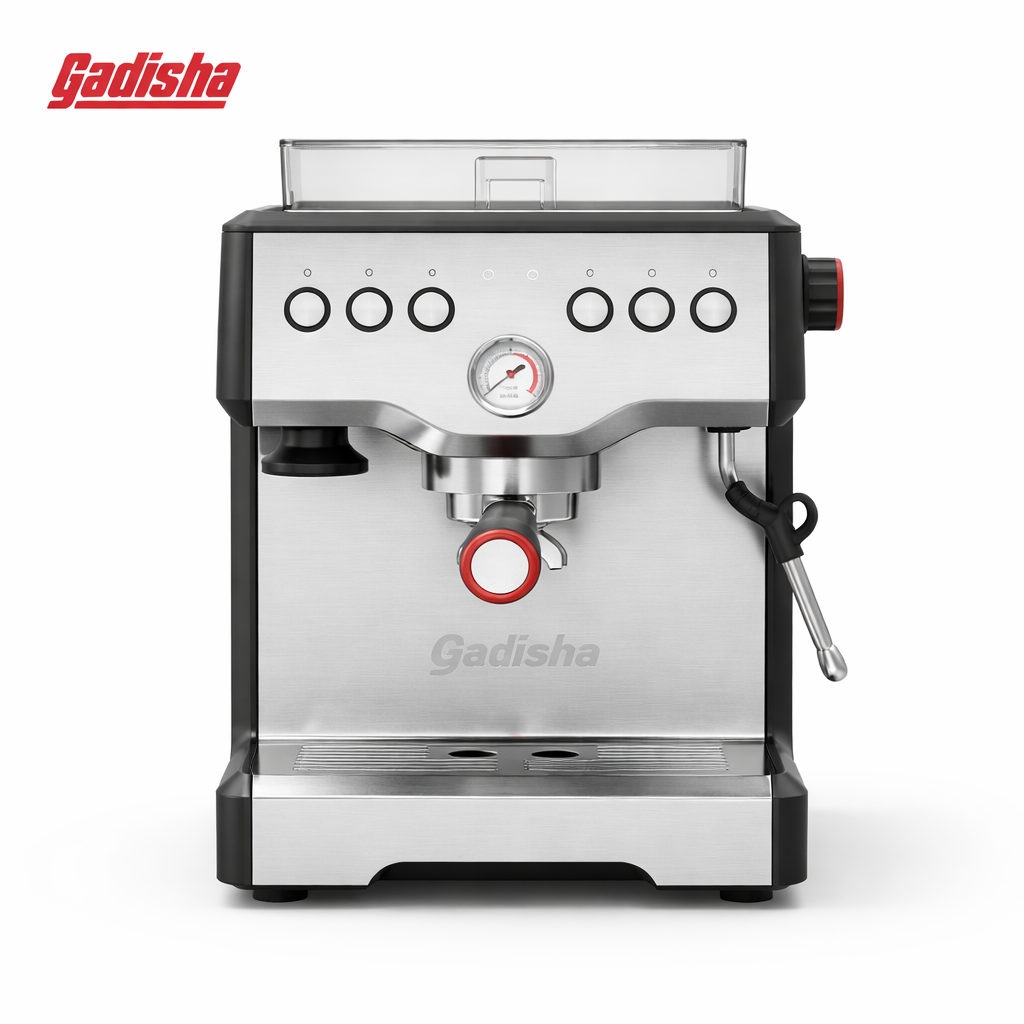 The Gadisha Semi-Automatic Espresso Machine combines professional styling with user-friendly operation for home coffee enthusiasts. Featuring a powerful pump system, it ensures optimal pressure extraction for balanced espresso flavor and crema.